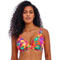 Dive into your next holiday adventure with the Sun Haze high apex bikini top by Freya. Designed to balance style and support, this must-have bikini top combines fashion and functionality to be your new go-to beach favourite. Its underwired structure promises exceptional support, while the non-padded cups and low plunge neckline enhance your natural silhouette for all-day confidence. The elongated apex subtly lifts and highlights your cleavage, complemented by the all-over vibrant tropical print to create an eye-catching poolside look. A customisable fit is offered by fully adjustable shoulder straps with a versatile racerback option, plus a secure plastic clasp closure at the rear. Wear with matching swimwear from the Sun Haze collection for a statement sunbathing ensemble.