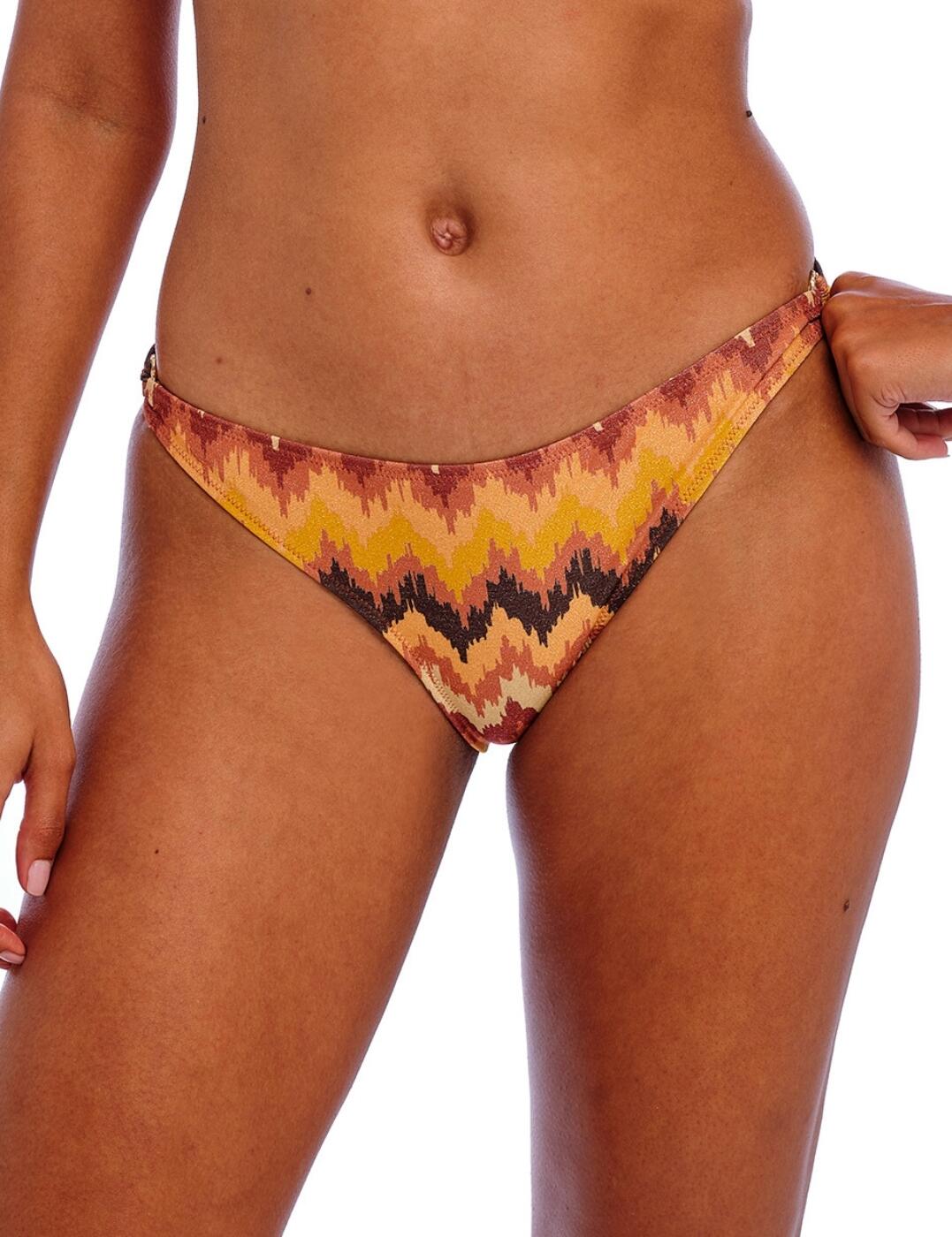 Upgrade your holiday essentials with the Aruba Nights mid-rise bikini brief by Fantasie. Offering a flattering mid-rise waist and reassuring medium rear coverage, these must-have bikini briefs are a perfect addition to any beach adventure. They're adorned with a timeless feminine print, complemented with a chic ring detail on the waistband to add a touch of sophistication to your swimwear. Plus, with full lining, you can wear these bikini briefs confidently and comfortably whether you're relaxing by the pool or soaking up some beach waves. Pair with matching pieces from the Aruba Nights collection for a head-turning look.