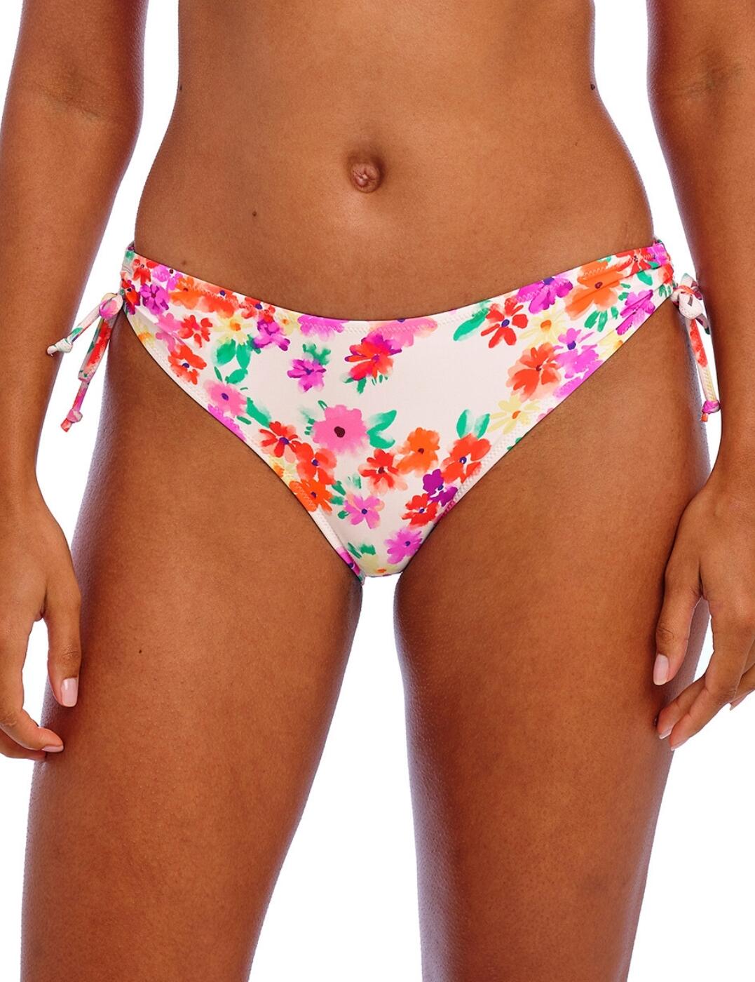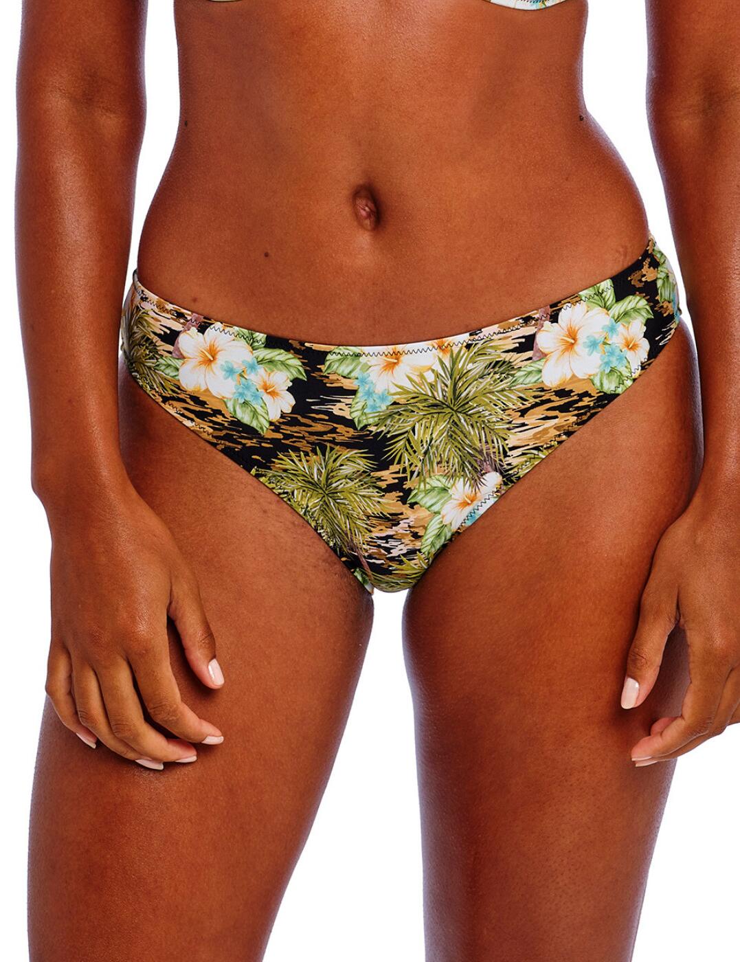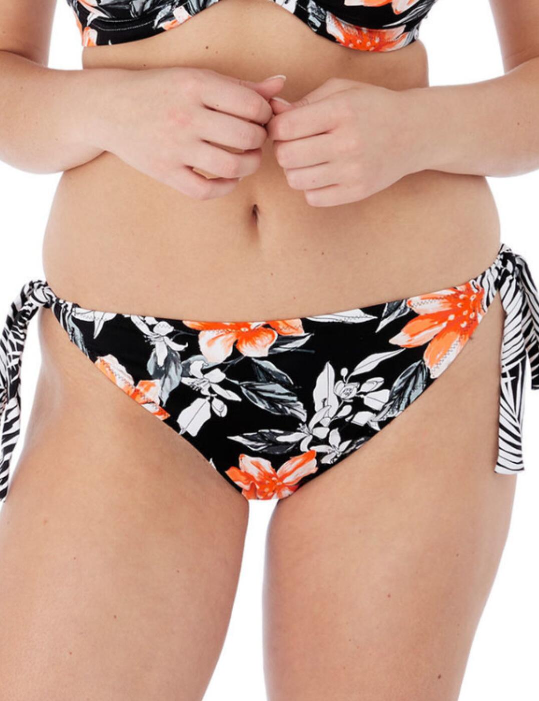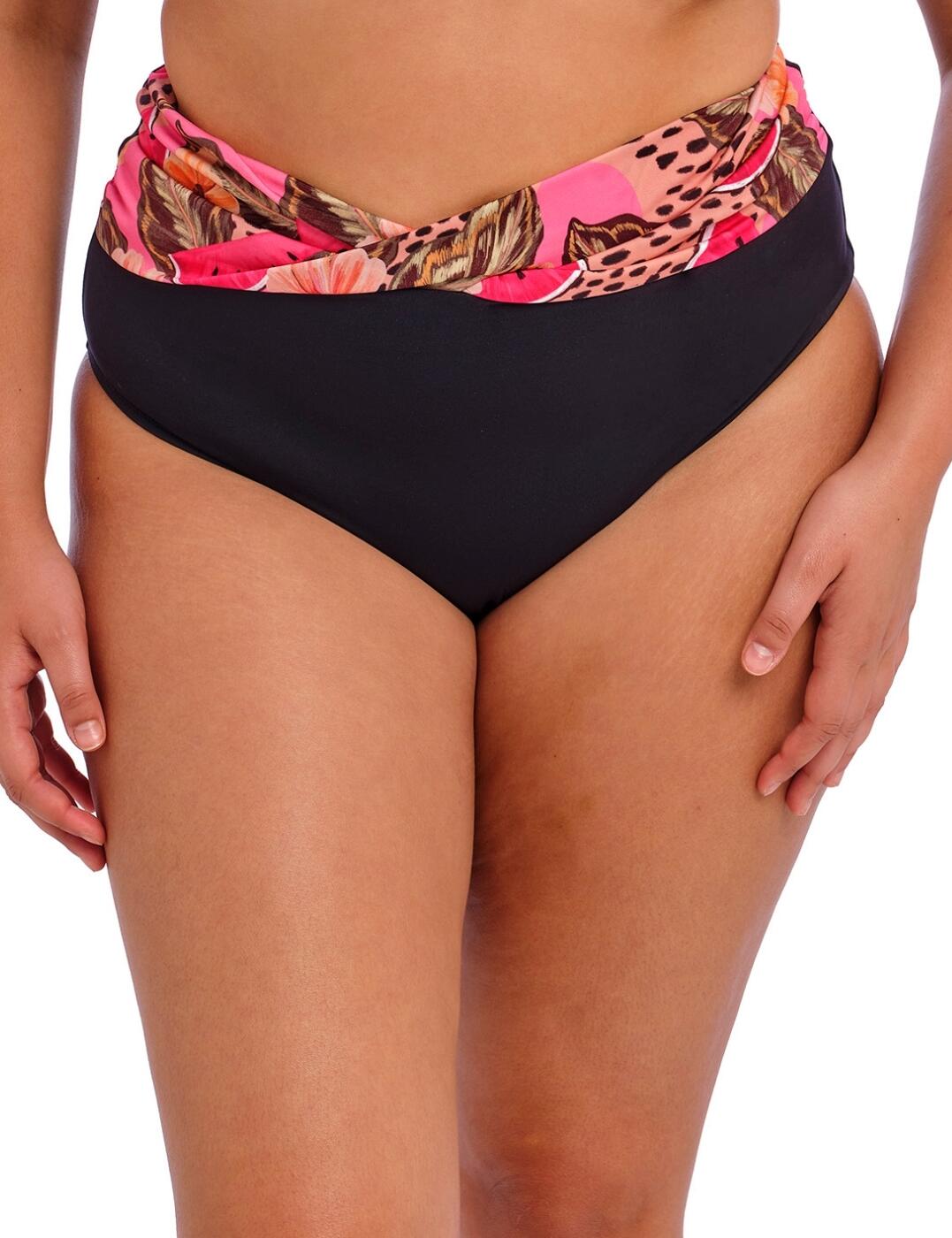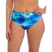 Turn heads by the pool this season with the Saunton Sands full bikini brief by Fantasie. Featuring a high-rise waist and generous rear coverage, these bikini briefs are a confidence-boosting addition to any holiday wardrobe. They're adorned with a tranquil ocean-inspired print and offer flattering gathered styling and a delicate ruching effect, accentuating your silhouette and highlighting your natural curves. Plus, with full interior lining for your comfort, you can reach for these bikini bottoms no matter the occasion, whether you're braving the waves or relaxing on the sand. Wear with matching Saunton Sands swimwear to complete your elegant ensemble.