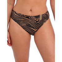 Make waves with your swimwear this season in the Pemba Island mid-rise bikini brief by Fantasie. Showcasing a sophisticated abstract wave print perfect for your next tropical getaway, these bikini briefs offer an exceptional blend of style and comfort. The mid-rise design and medium rear coverage promise confident wear whether you're lounging by the pool or topping up your tan on the beach. The fully lined fabric adds an extra level of all-day comfort, while the statement metallic trim on the waistband draws your eye, with flattering fabric pleats to cinch your silhouette. Pair with matching Pemba Island swimwear to complete this effortlessly chic beach look.