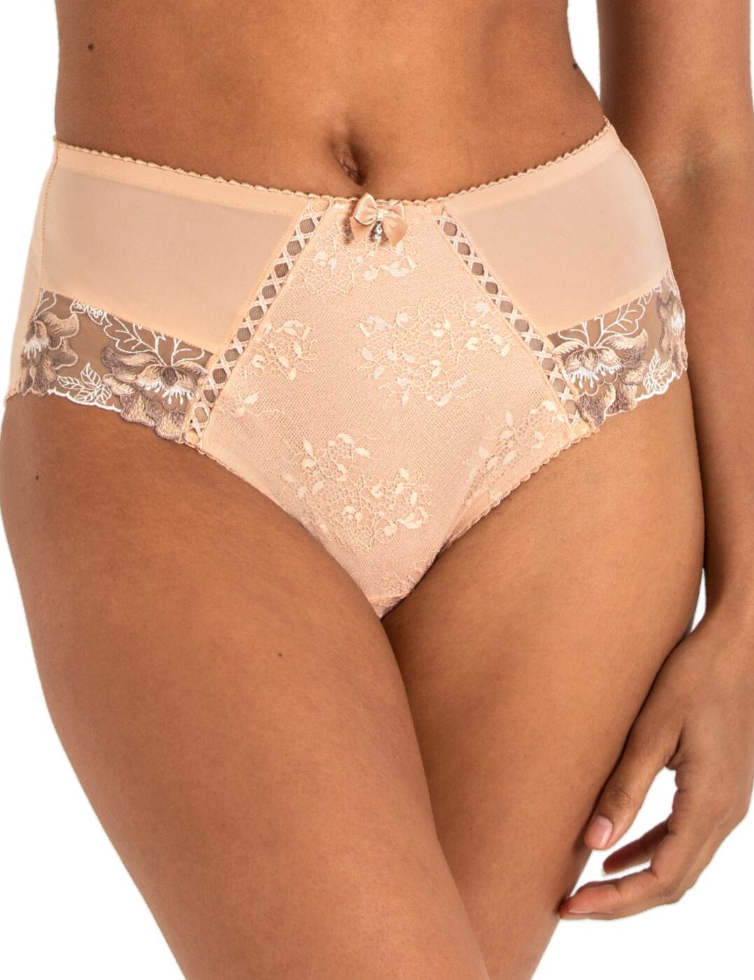 Feel fabulous this season while wearing the Elomi Lucie high-leg briefs. With a high-rise waist and stretch lace side panels, this brief accentuates your curves and provides a flattering and comfortable fit. The floral printed front panel adds a touch of femininity, while the double-layer stretch mesh ensures maximum support and durability. Featuring a delicate bow at the centre front, this piece exudes elegance and charm. And for those, who want a little extra coverage, the full rear coverage guarantees a comfortable and secure fit all day long. Plus, the Elomi Lucie collection also offers a matching bra for a complete and coordinated lingerie set.