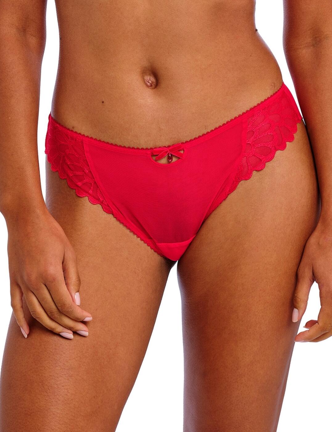 Update your lingerie collection with the Laurine range by Freya if you are looking to add a playful twist to your everyday lingerie. It introduces this brief which is designed with a mid-rise waist and medium rear coverage, offering the perfect balance of comfort and sophistication. The opaque centre front provides modesty, while the sides feature layered heart embroidery on sheer mesh, adding a touch of romance and charm. The double-layered mesh rear ensures a flattering and smooth fit, with a gather seam at the back for a shaping effect. Plus, the smooth edges eliminate any visible panty lines for a flawless look. Featuring a mini keyhole cut out in the centre with a cute bow and heart charm, what's not to love?