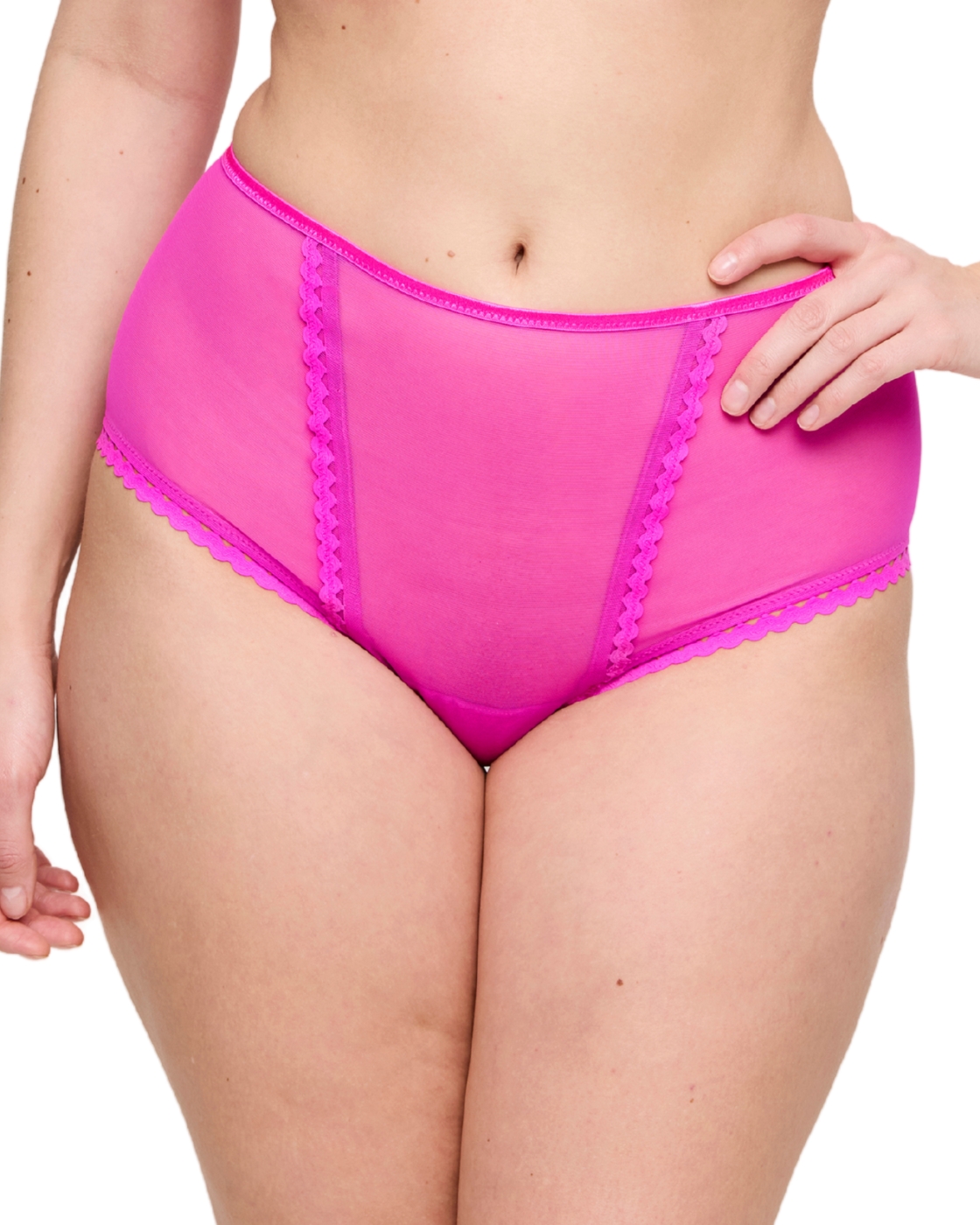 Upgrade your lingerie collection with this brief from the Elomi Reja range. Sitting high on the waist, these briefs provide a flattering fit that enhances your silhouette and a high leg cut for a figure-elongating effect. This timeless brief is expertly crafted using double-layer stretch mesh on the front and rear and smooth fold-over leg panels for a seamless silhouette. Adorned with embroidered panels on the front of the brief for a feminine touch. Whether you're dressing up for an occasion or introducing some newness to your everyday lingerie, these briefs will bring you effortless elegance. Pair with matching items for a coordinated look.