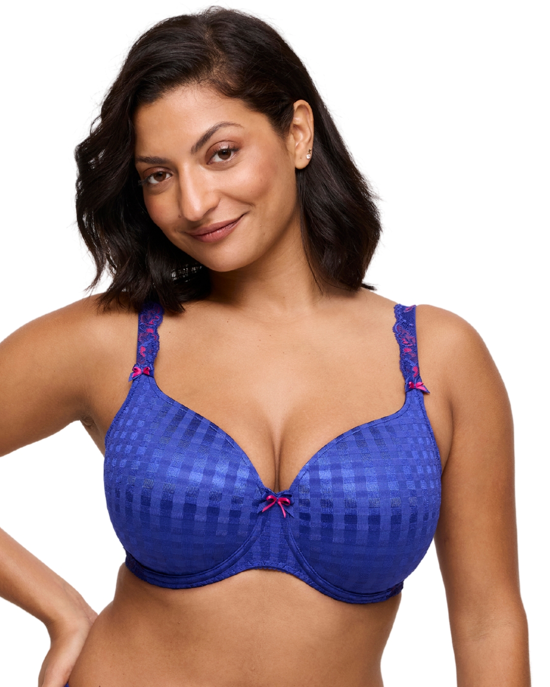 Showcase sophistication and romance with this underwired bra from the Wacoal Abellia range. Utilising a soft stretch lace on the cups, with the lower half having an opaque finish for modesty and feminine scalloped neck edges. A subtle v-neckline effortlessly compliments your cleavage while the keyhole cut-out adds a flirty twist. The perfect finishing touch is a delicate charm detail in the centre for a hint of glamour. Featuring adjustable straps that help find your perfect fit and a secure hook and eye fastening for easy wear. Pair with coordinating briefs from the Abellia range to elevate your look!