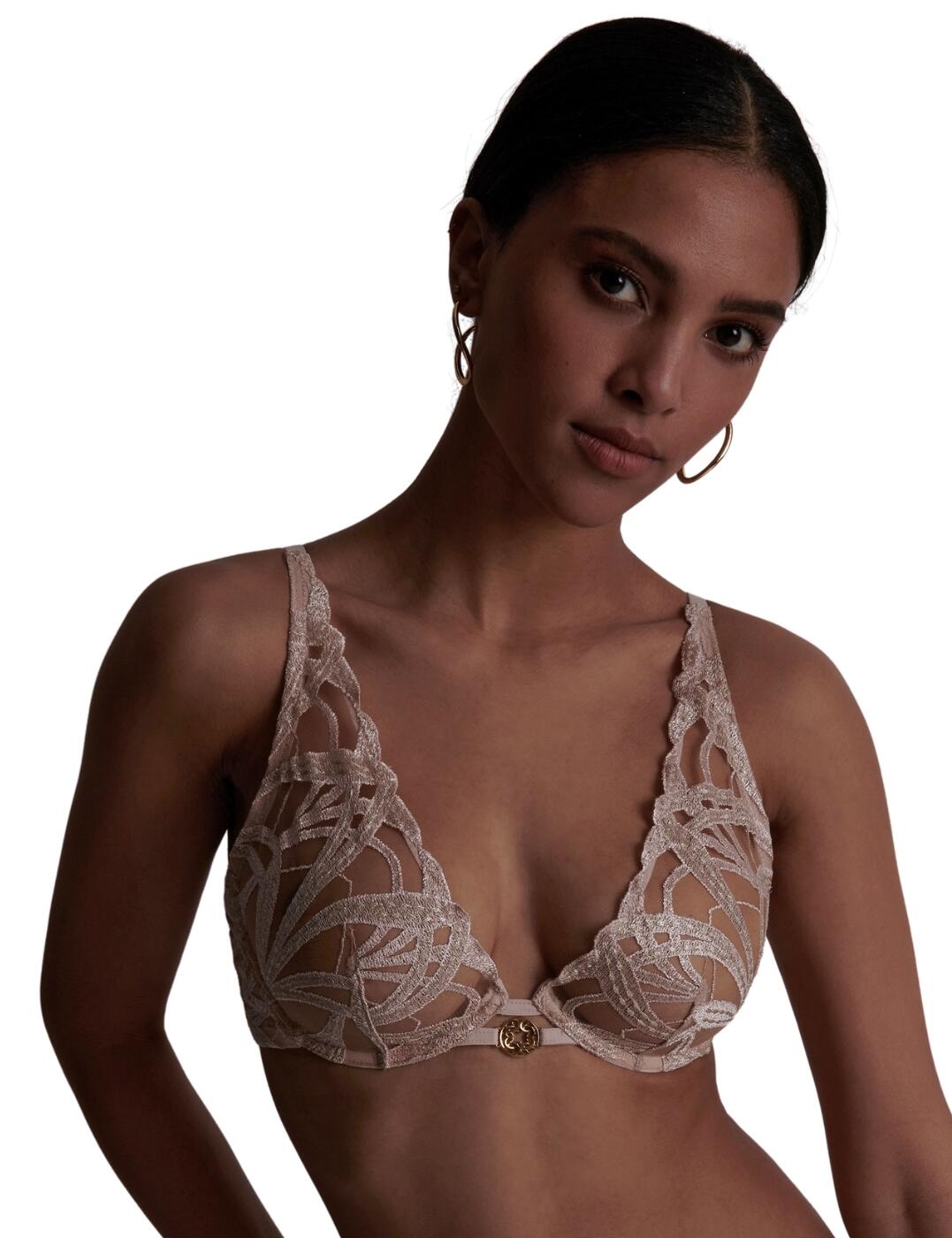 Embrace allure with the Loveland plunge bra by Freya - your new go-to for self-confident style. With its daringly low centre front and plunging neckline, this lavish bra enhances your silhouette without sacrificing support thanks to an underwire and non-padded, three-part cups. The enchanting boudoir embroidery embodies the collection's Art Deco-inspired design, while the seductive keyhole detail and gemstone and bow embellishments add touches of sophistication. Powernet wings provide additional support for all-day wear, and the fully adjustable straps and hook and eye closure ensure a personalised fit. Wear with matching lingerie from the Loveland collection for head-to-toe sumptuous style.