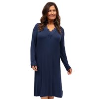 Soft, simple, and made to move with you, the long-sleeve short nightdress from the Nora Rose Caroline collection by Cyberjammies. Thoughtfully crafted from ultra-soft, sustainable materials, this nightdress offers comfort you can feel great about. The scalloping lace accent brings elegance to every detail, making this timeless and sophisticated. The Long sleeves and just below the knee style provide the perfect balance of warmth and comfort. Watching a movie or even sinking your teeth into a good book, this is perfect for those wanting maximum comfort with elegant styling.