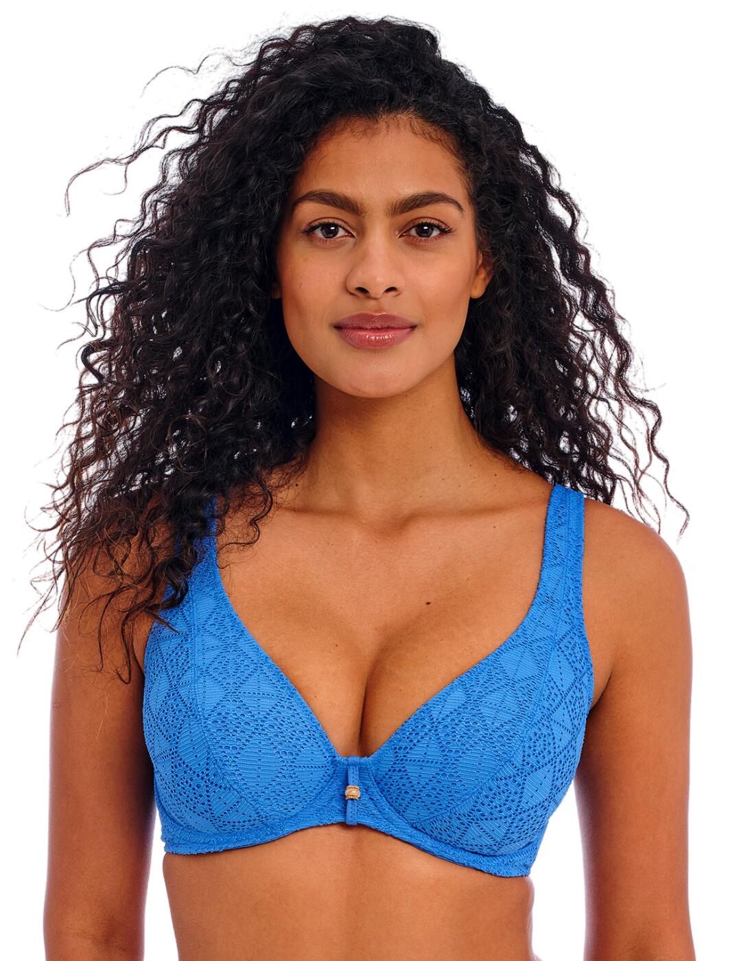 The Fantasie Ottawa underwired wrap front full-cup bikini top is your perfect mix of functionality and elegant styling in one sophisticated piece. Crafted from high-quality fabrics, the top is comfortable to wear and ensures a natural fit with non-padded cups. The full-cup design provides medium support and also offers a natural shape enhancement, making it ideal for all body types. The concealed side sling offers improved forward projection while the supportive underwire ensures you feel secure and confident throughout the day without any distracting movement. At the back, a powernet lining works to add extra support to keep everything firmly in place no matter how active you get out on the beach. The twist front gives this bikini top an especially flattering fit that will draw attention to your beautiful neckline. The gorgeous print with gold hardware adds a hint of luxury to the piece without overpowering your look, making it perfect for timeless style seekers who love classic designs with subtle yet stylish touches. With its adjustable straps and clasp closure, this bikini top gives you endless ways of customizing it to make sure it fits just right every time!