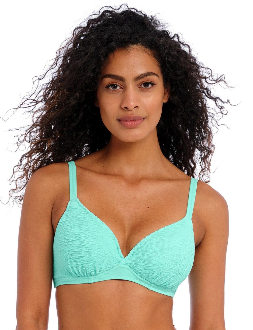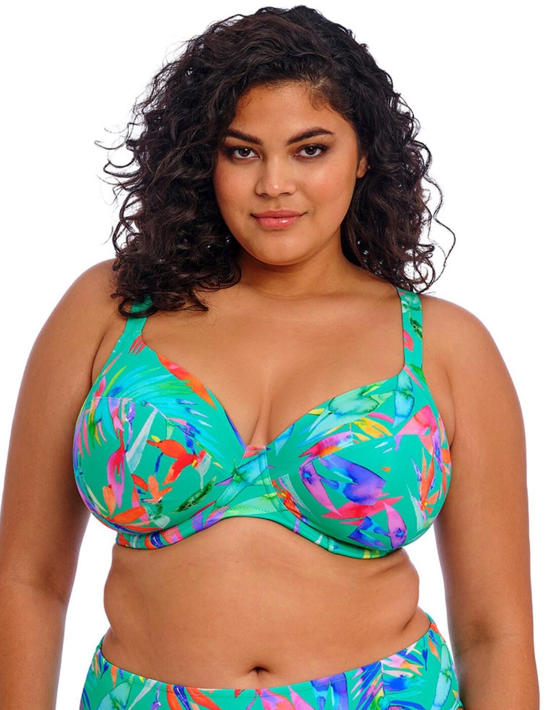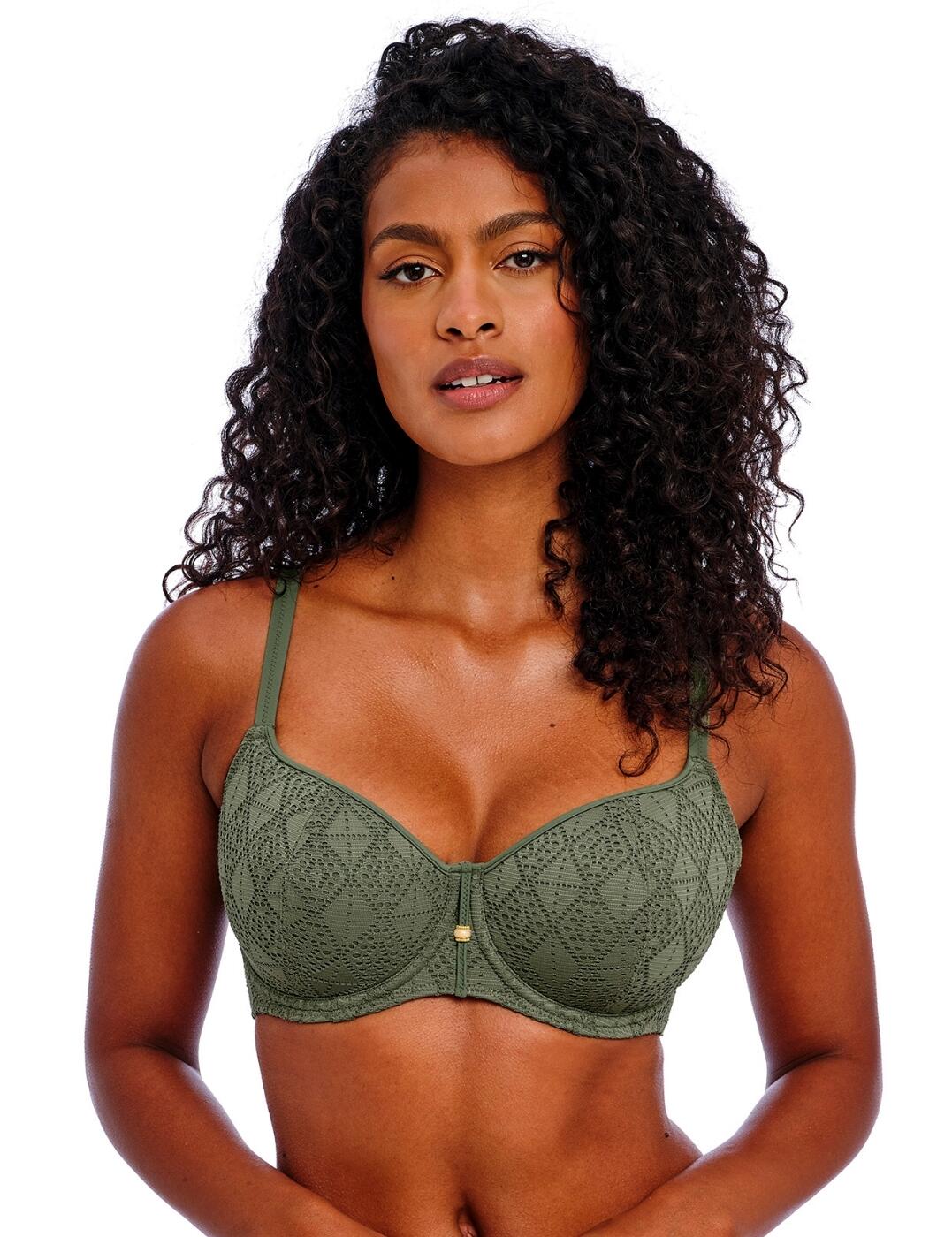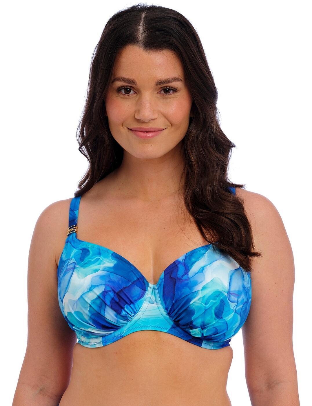 The Fantasie Ottawa underwired wrap front full-cup bikini top is your perfect mix of functionality and elegant styling in one sophisticated piece. Crafted from high-quality fabrics, the top is comfortable to wear and ensures a natural fit with non-padded cups. The full-cup design provides medium support and also offers a natural shape enhancement, making it ideal for all body types. The concealed side sling offers improved forward projection while the supportive underwire ensures you feel secure and confident throughout the day without any distracting movement. At the back, a powernet lining works to add extra support to keep everything firmly in place no matter how active you get out on the beach. The twist front gives this bikini top an especially flattering fit that will draw attention to your beautiful neckline. The gorgeous print with gold hardware adds a hint of luxury to the piece without overpowering your look, making it perfect for timeless style seekers who love classic designs with subtle yet stylish touches. With its adjustable straps and clasp closure, this bikini top gives you endless ways of customizing it to make sure it fits just right every time!