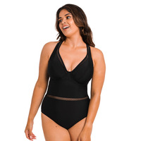 This First Class swimsuit from Curvy Kate is a must-have for any beach outing. The deep plunging neckline is sure to garner you more than a few appreciative glances, while the rest of the design and the full rear coverage protect your modesty. The lightly lined cups give you a flattering look, which you can enhance by playing with the multiway straps and creating your personalised style. As a finishing touch that makes this swimsuit stand out, it features a crisscrossing cutout pattern around the decolletage and the waist, optically cinching it.
