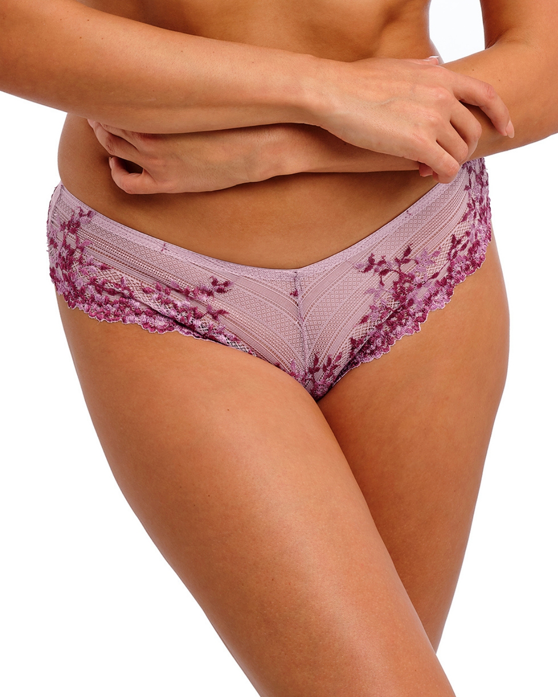 Elomi's Morgan bra is feminine and flirty with sheer lace adorning the upper cup, giving full-cup coverage with a glimpse of what's underneath. The cups are underwired to provide support and the non-padded cups give a natural, smooth shape. There is a classic bow embellishment in the centre to add a playful touch. The adjustable straps and the hook and eye fastening ensure the perfect fit that will stay secure all day long.