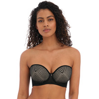 The Tailored collection by Freya adds a touch of contemporary style to everyday lingerie staples. This supportive strapless bra boasts a Stay4Sure gripper elastic trim for increased anchorage and support. Fully adjustable and detachable shoulder straps allow you the option to wear multiway or strapless so is perfectly concealed under clothing. Moulded cups create a smooth finish and the underwiring offers added support. Complete the look with matching lingerie from the chic Tailored collection by Freya.