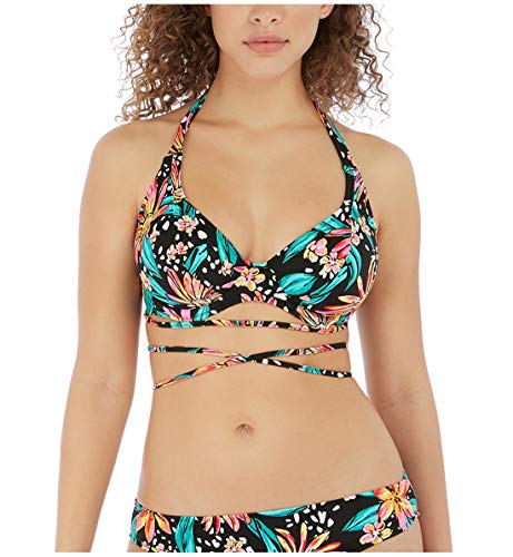 Dive into style this season with the Cala Macarella bandeau bikini top by Fantasie. Showcasing a vibrant tropical print with a playful bunny knot tie at the centre, this versatile bikini top is your passport to a confident and stylish beach experience. The concealed underwire and lightly padded foam cups provide exceptional support and shaping, ensuring you feel as good as you look. Powernet-lined wings offer anchorage, working with the deep plastic clasp closure at the rear to promise you all-day confidence and comfort. What's more, fully adjustable and detachable multiway straps offer complete customisability so you can switch up your look to suit your taste, whether you're braving the waves or relaxing by the pool. Wear with matching Cala Macarella swimwear to complete your holiday wardrobe.