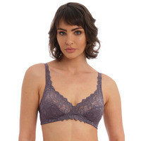 Enjoy utter comfort in this non-wired bra from the Eglantine collection by Wacoal. The cups slowly taper into wider straps, with a scallop trim, for extra support. Lace cups offer slight exposure with lower padding for a supportive style. The lower cups have rigid tricot lining for a firm yet flexible fit. Foam sides offer a slight boost to the bust whilst still maintaining a modest style. Hook and eye closures are used, as well as fully adjustable straps, so you can find your perfect fit. Stretch satin is used at the rear of the piece to ensure ease of movement is never compromised. The neckline has added elastic to hug your bust whilst decorating it in scallop trim lace.